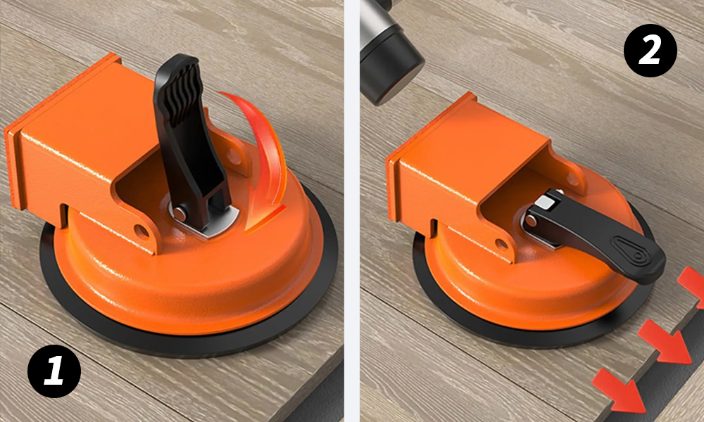 Place the tool on the floorboard that needs adjustment, and press the suction base firmly to lock it in place.